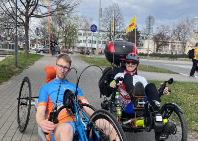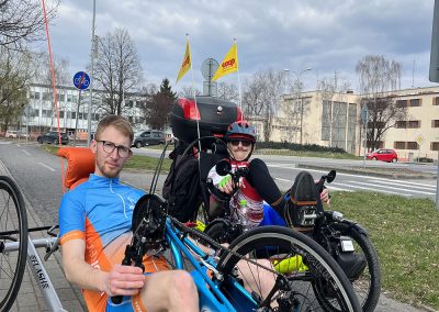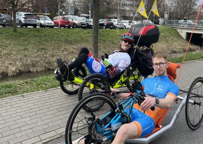 Vďaka podpore Nadácie KIA a projektu Inšpirácia pohybom 2022 sa občianskemu združeniu Žijeme len raz podarilo získať univerzálny handbike pre aktívnych ľudí, ktorých ani hendikep neodradí užívať si radosť z pohybu a čerstvého vzduchu. Nový handbike prešiel zaťažkávacou skúškou v HENDI CENTRE – vyskúšal ho fyzioterapeut Tomáš, ktorému pri testovacej jazde robil spoločnosť Peter Káčer, pravidelný klient HENDI CENTRA. Všetko je pripravené, vyladené a novučičký handbike je pre Vás pripravený do terénu.