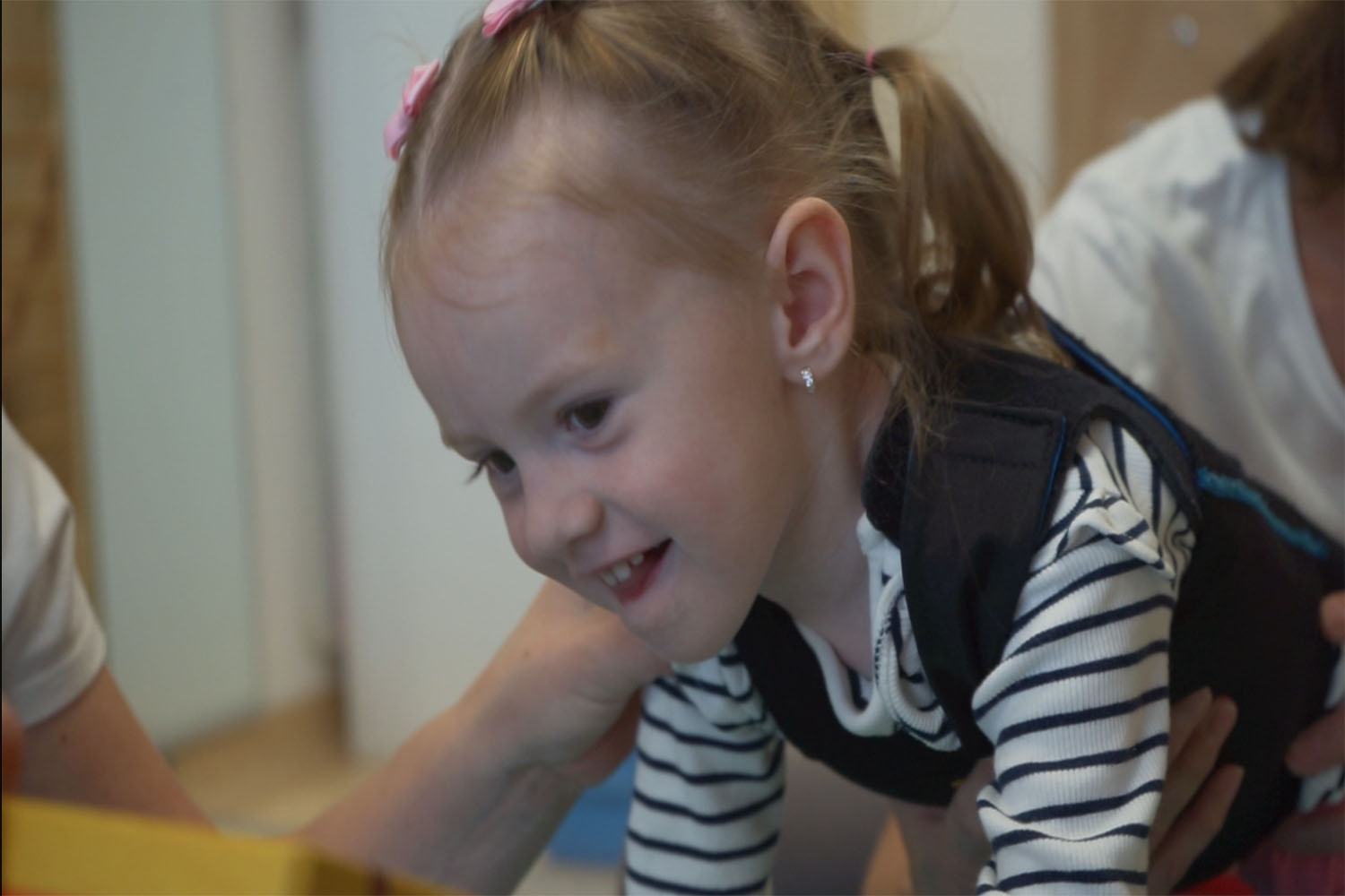 Päť mesiacov po úspešnom podaní lieku v bratislavskej nemocnici a následnej kortikosterodinej liečbe mohlo statočné dva a polročné dievčatko konečne nastúpiť na svoj prvý rehabilitačný pobyt. Rodina sa rozhodla pre naše zariadenie, v ktorom už tri roky poskytujeme komplexnú rehabilitáciu SMA pacientov z celého Slovenska, ale aj zo zahraničia.