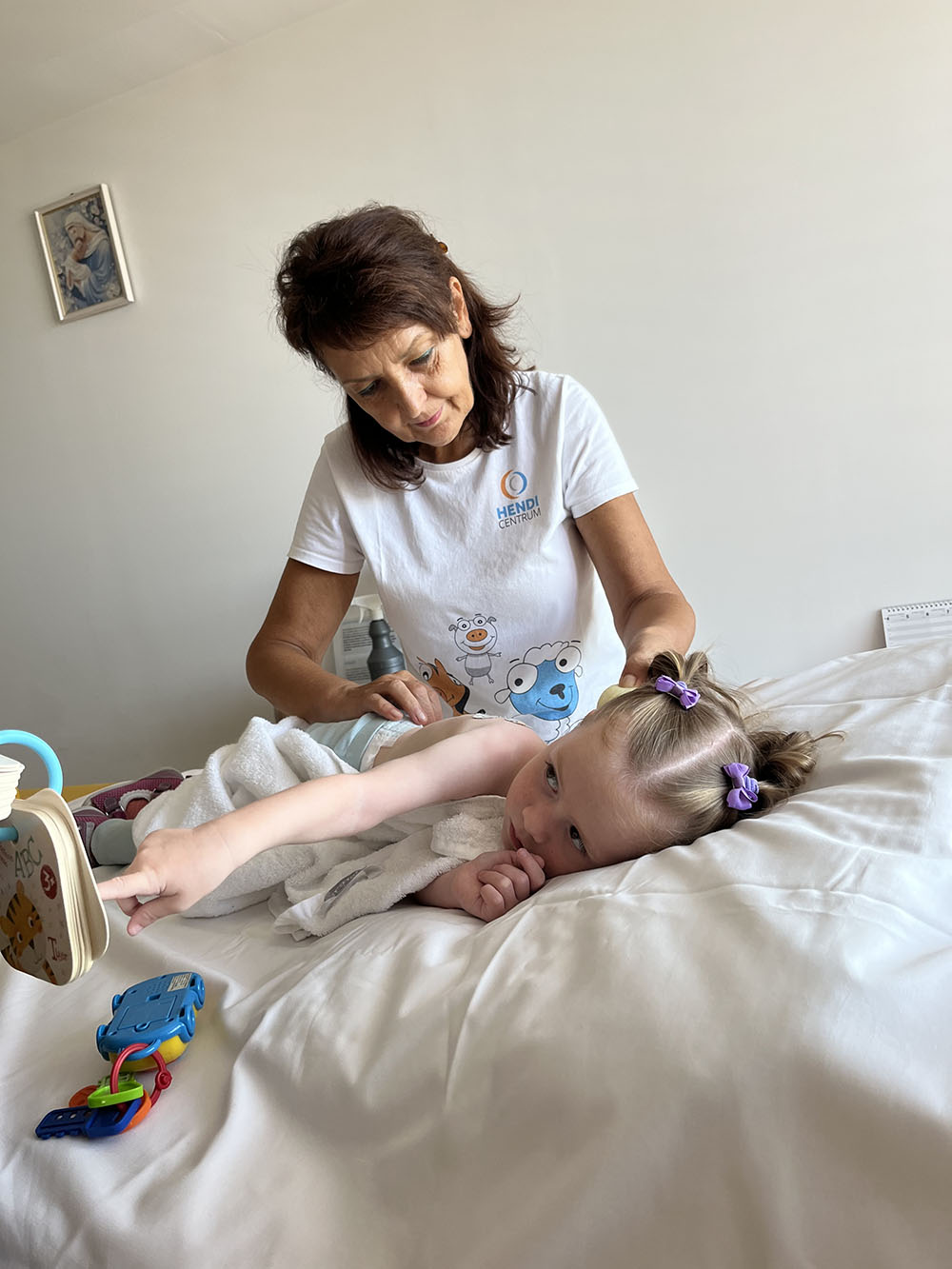 Populárne skladby od slovenských detských interprétov či detské ľudovky? Dievčatko si mohlo vyberať, ktorú z pesničiek mu fyzioterapeutky Sonička a Erika z oddelenia našich najmenších zanôtia na želanie. Našťastie spev im ide veľmi dobre a ich priam anjelské hlasy už v minulosti upokojili nejdeného detského klienta. „Editku sme si počas jej prvého pobytu museli získavať postupne, ale nakoniec sa nám to podarilo a začala s nami krásne spolupracovať a komunikovať. Motivovať ju bolo spočiatku náročné, ale získali sme si ju spevom. Editka miluje detské pesničky a tak si spieva s nami. Teraz si od nás doslova vyžaduje, aby sme spolu spievali počas celej hodiny“, hovorí so smiechom hlavná fyzioterapeutka na Oddelení najmenších detí v HENDI CENTRE Soňa Krchnáková.