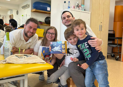 „Kubi už necvičí so Soničkou, ale s Andrejom. Už tam majú chlapské reči a je výsostne spokojný. Okrem toho má spider terapiu s Jurajom, no a my s Lukim sme vlastne už len sprievod. Sme veľmi spokojní, aj čo sa týka individuálneho prístupu, vždy sa dá s fyzio tímom dohodnúť, čo sa bude precvičovať. Vedia, na aké partie sa zamerať a ich prístup je osobný a priateľský. Doslova je to šité na mieru,“ hovorí.